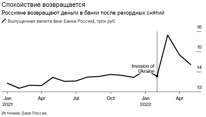 Более широкие перспективы также становятся благоприятнее, поскольку некоторые эксперты прогнозируют гораздо менее глубокую рецессию в этом году, чем предполагалось ранее. Более высокие ставки побудили больше россиян возвращать деньги в банки после рекордного снятия средств, начиная с февраля.