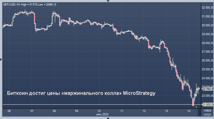 Цена биткоина во вторник приблизилась к уровню, который может вынудить фирму-разработчика программного обеспечения MicroStrategy Inc (MSTR.O) поставить больше токенов против кредита, обеспеченного биткоинами, или спровоцировать продажу некоторых из его обширных активов, что приведет к нестабильности курса криптовалюты и поставит крипторынки на грань краха.
