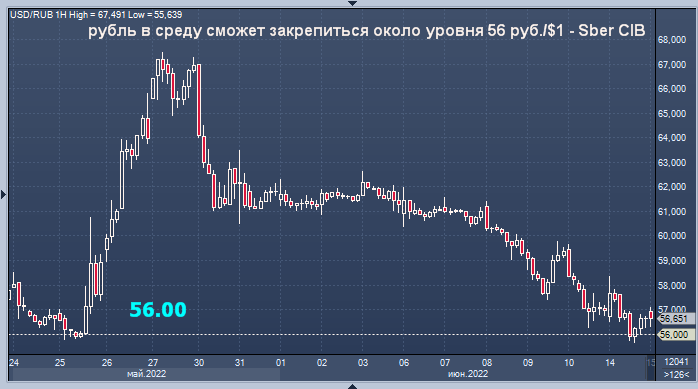 Также, по мнению экспертов, рубль в среду, вероятно, сможет закрепиться около уровня 56 руб./$1. На мировом рынке в центре внимания будет заседание ФРС США - ожидается, что регулятор повысит ставку на 50 б.п. (до 1,5%) и пообещает поднять ее до 3,5% к концу года на фоне высокой инфляции. Инвесторы опасаются повышения ставки сразу на 75 б.п., отмечают аналитики Sber CIB.