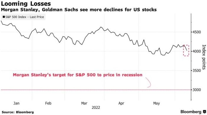 Настроения инвесторов в отношении рискованных активов в последние недели ухудшились, поскольку безудержная инфляция и ястребиная политика Федеральной резервной системы вызвали угрозу продолжительного экономического спада. Уилсон, один из самых известных «медведей» на Уолл-стрит, который правильно предсказал последнюю распродажу на рынке, сказал, что если базовым сценарием рынка станет полномасштабная рецессия, S&P 500 может достичь дна около 2900 индексных пунктов, что более чем на 21% ниже его нынешних уровней.
