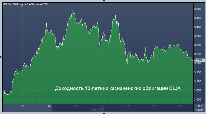 График доходности 10-летних казначейских облигаций США интервалами в 30 минут