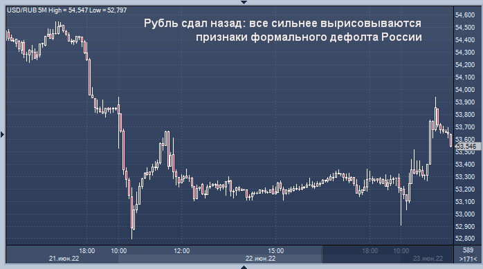 Российский рубль ослаб по отношению к доллару в четверг, но колебался недалеко от семилетних максимумов, чему способствовали меры контроля за движением капитала и перспектива благоприятного предстоящего периода уплаты налогов. Однако призрак возможного дефолта вырисовывался все шире.