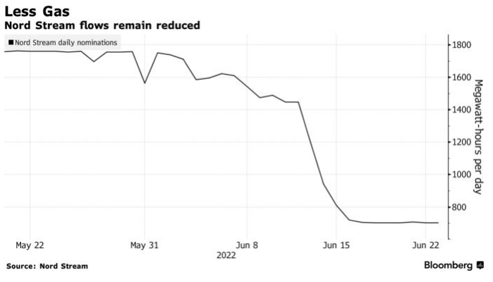 Трубопровод Nord Stream в Германию загружен примерно на 40% после того, как на прошлой неделе потоки газа были прекращены, что, по словам российского экспортера газа ПАО «Газпром», было вызвано технической проблемой. Однако и Хабек, и Тиммерманс назвали этот шаг стратегией Кремля, направленной на подрыв топливной безопасности и подрыв единства Европы.