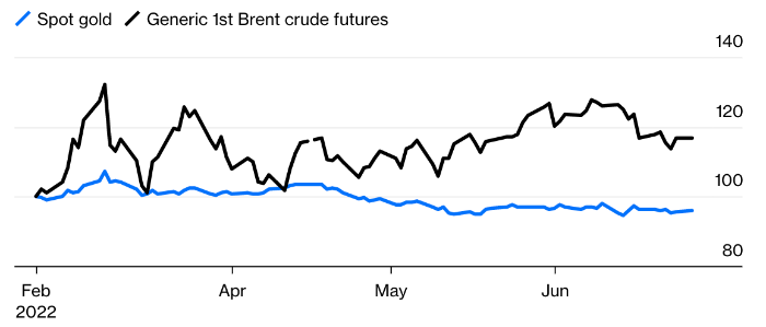 Динамика цен на нефть и на золото с начала военного конфликта на Украине