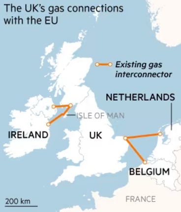 Европейские газовые компании обратились к Великобритании с призывом сотрудничать с ЕС и предупредили, что отключение интерконнекторов может иметь неприятные последствия, если возникнет продолжительная нехватка. Великобритания импортирует большие объемы газа с континента в разгар зимы.