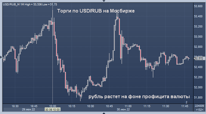 Курс доллар/рубля на Мосбирже интервалами в 1 минуту