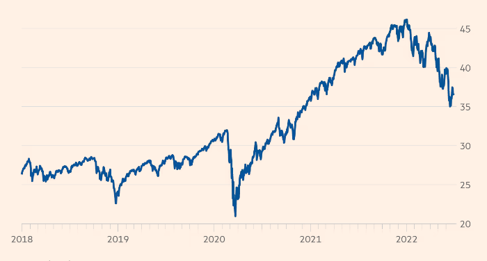 Рыночная капитализация индекса S&P 1500 упала с $45.8 трлн на конец 2021 года до $36.6 трлн на закрытии Уолл-стрит в среду, 29 июня.