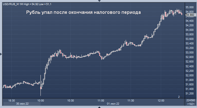 Курс доллар/рубля на Мосбирже интервалами в 1 минуту