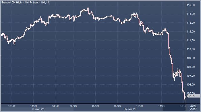 График нефти марки Brent интервалами в 5 минут