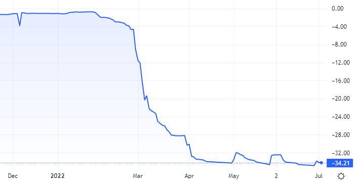 Динамика дисконта нефти Urals к Brent. Источник: TradingView
