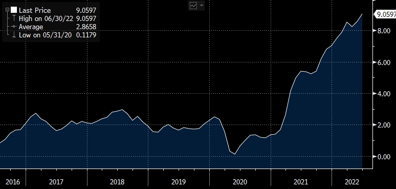 Индекс потребительских цен, опубликованный Бюро трудовой статистики в среду, еще больше ускорился в июне, превысив прогнозы экономистов о росте на 8,8%. Это был самый быстрый годовой прирост с ноября 1981 года.