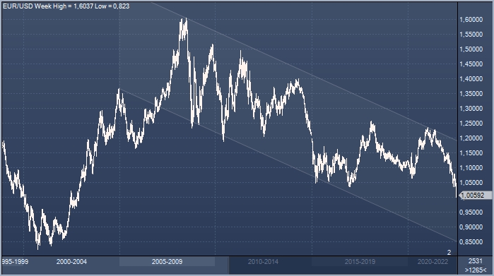 График евро/доллара интервалами в 1 неделю