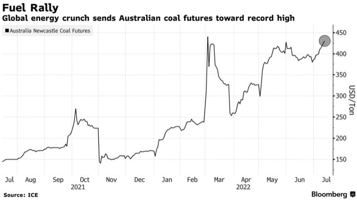 Глобальный энергетический кризис подтолкнул австралийские фьючерсы на уголь к рекордно высокому уровню