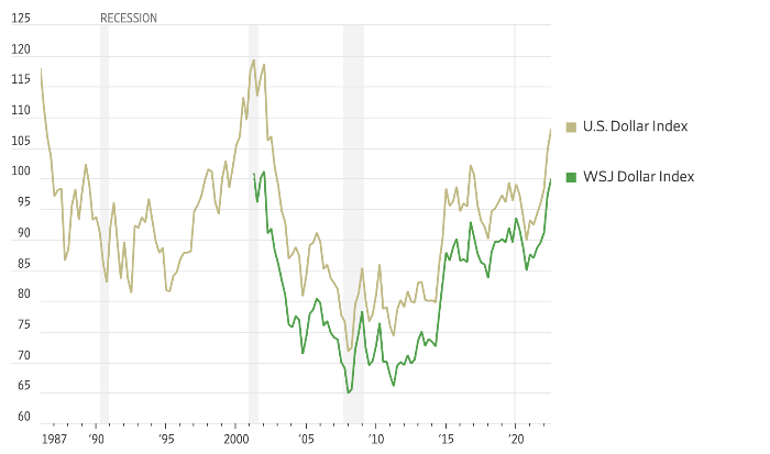 После самого крупного падения американской валюты в первом полугодии более чем за десятилетие действия инвесторов, которые пытаются защититься от падения акций и рассчитывают на устойчивость американской экономики, способствуют дальнейшему росту. Индекс доллара WSJ, который определяет курс доллара по отношению к корзине из 16 валют, на прошлой неделе достиг 20-летнего максимума и прибавил в этом месяце почти 2.5%. Евро торгуется ниже паритета с долларом впервые с 2002 года, а японская иена опустилась до минимумов, которые в последний раз фиксировались в конце 20-го века.