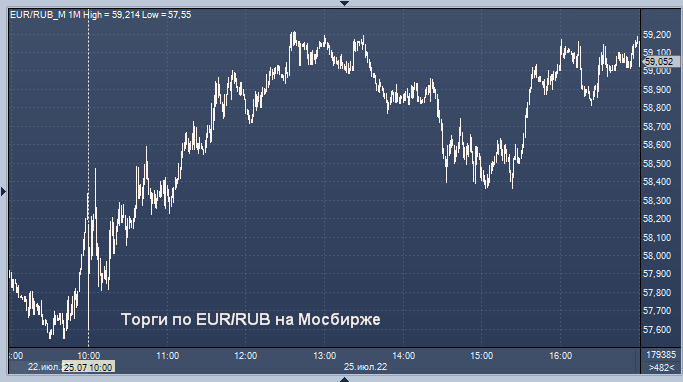 - 58,6741 рубля за 1 евро