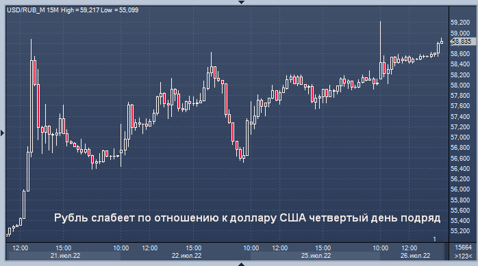 Рубль слабеет по отношению к доллару США четвертый день подряд, несмотря на продолжающийся налоговый период, который обычно заставляет экспортеров продавать иностранную валюту на рынке. Российская валюта была настроена на ту же серию потерь по отношению к юаню, а объемы торгов по паре достигли исторического максимума. Рубль падает на 0,7% по отношению к доллару до 58,5275; потерял 1% по отношению к юаню, а объем торгов CNYRUB на Московской бирже в понедельник достиг 7,8 млрд юаней.