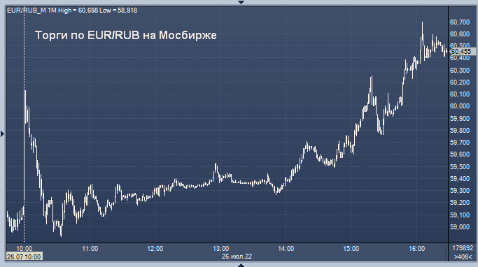 - 59,4068 рубля за 1 евро