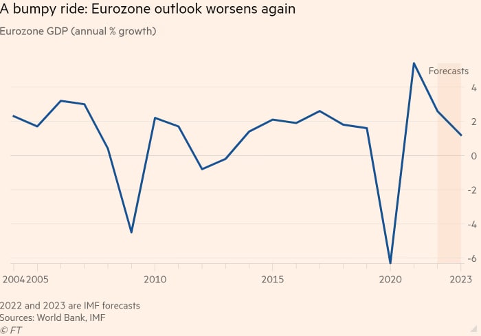 Прогнозируется, что рост в еврозоне во втором квартале немного превысит нулевой уровень, но экономисты ожидают устойчивого ухудшения состояния экономики блока в течение следующего года, поскольку вырисовываются риски рецессии.