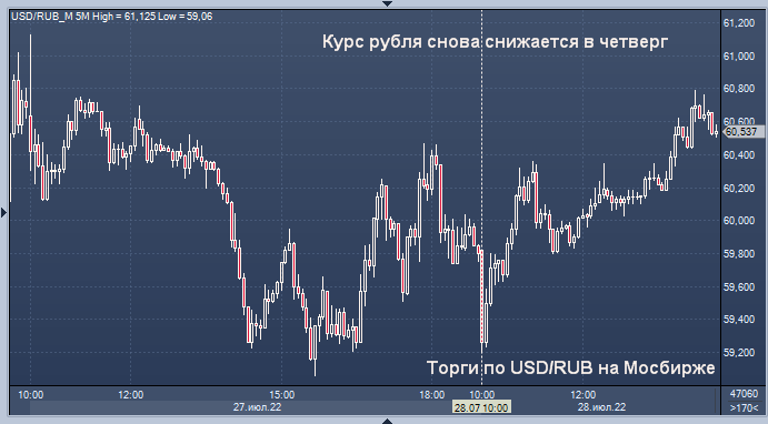 Курс доллар/рубля на Мосбирже интервалами в 1 минуту