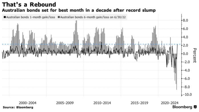 Австралийские облигации демонстрируют лучший месяц за десятилетие после рекордного спада