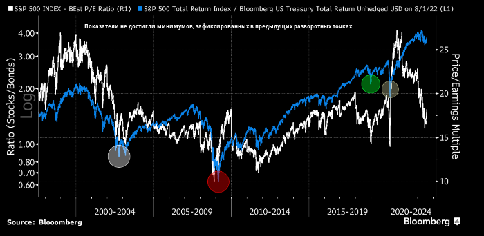 «Форвардный коэффициент цена/прибыль по доходам, которые все еще могут быть пересмотрены в сторону понижения, составляет 17.8, — заявила она. — В периоды агрессивной политики ФРС и рецессии, как показывает история, предпочтительной точкой входа для акций является момент, когда премия за риск по акциям превышает 450 базисных пунктов».