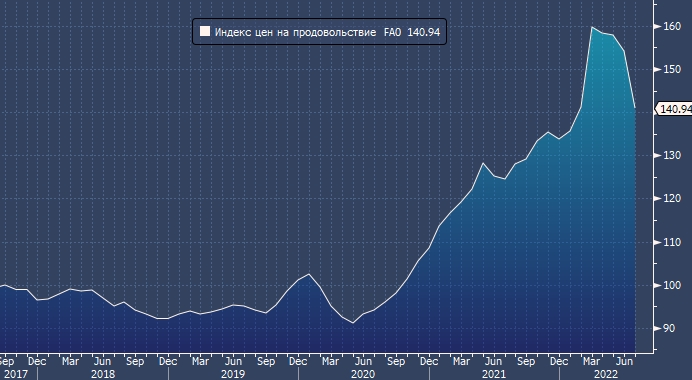 Индексы цен на растительное масло, сахар, молочные продукты, мясо и зерновые упали в июле в месячном исчислении, при этом пшеница подешевела на 14,5%, частично из-за соглашения, достигнутого между Украиной, Россией, Турцией и Организацией Объединенных Наций о разблокировании экспорта зерна из портов Черного моря.