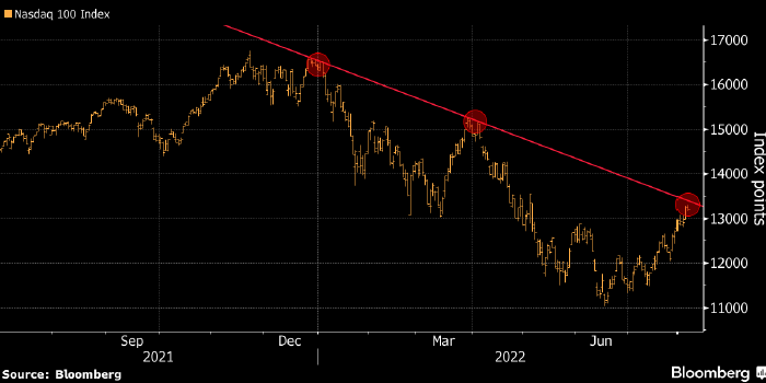 В середине июня американский фондовый индекс Nasdaq 100 достиг многомесячных минимумов в области 11 000 пунктов, а доходность 10-летних гособлигаций США — многолетних максимумов около 3,5%. С тех пор Nasdaq 100 вырос почти на 20%, а доходность 10-летних трежерис снизилась примерно на 1% на фоне усиления рецессионных рисков.