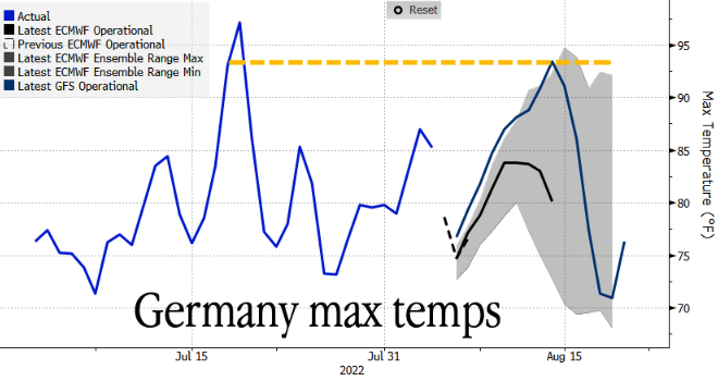 Синоптик Deutscher Wetterdienst предсказал, что жаркая погода сохранится до середины августа. Погодные модели показывают, что к 14 августа максимальные температуры в регионе подскочат до уровня середины июля в области 35 градусов по Цельсию, а затем вскоре после этого опустятся до низких/средних 20-градусных.