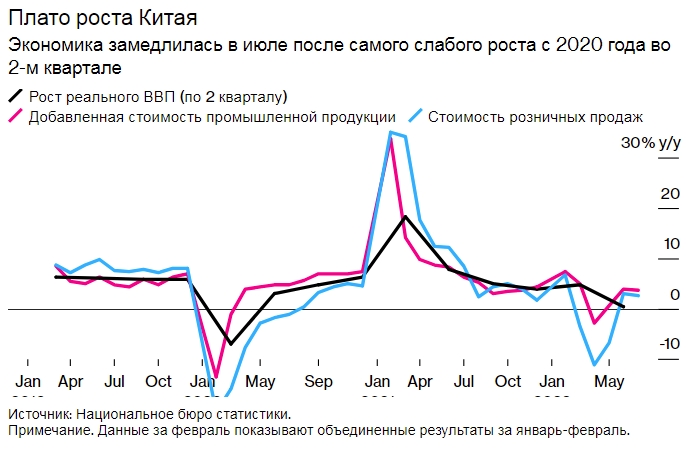 Société Générale охарактеризовал июльские данные как «просто плохие», с замедлением производства, инвестиций и потребления «под сокрушительным весом политики нулевого Covid» и с «жилищным сектором в свободном падении».