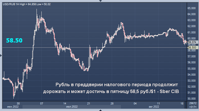 Рубль в преддверии налогового периода продолжит дорожать и может достичь в пятницу 58,5 руб./$1, прогнозируют эксперты. Если укрепление рубля в пятницу продолжится, то доходности ОФЗ могут опуститься на несколько базисных пунктов, полагают в Sber CIB.