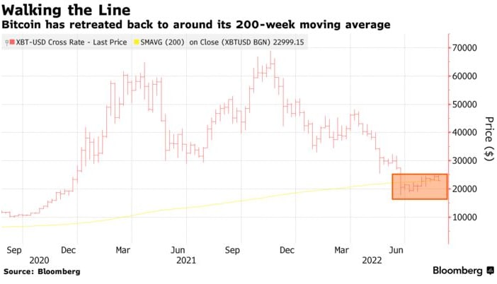 Биткойн вернулся примерно к своей 200-недельной скользящей средней