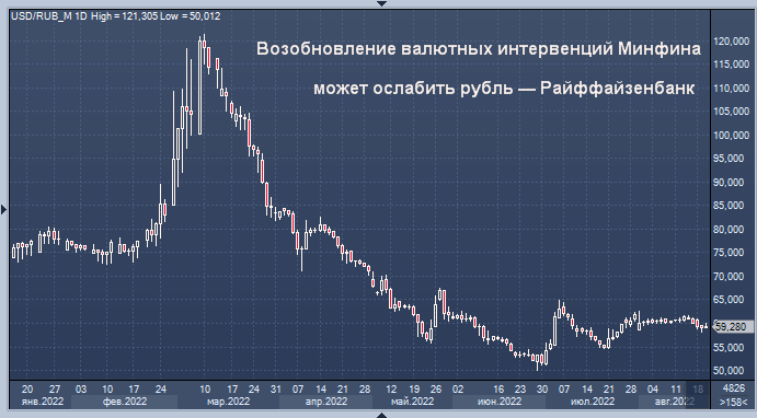 В нашем текущем прогнозе (65-70 руб./$1 на конец 2022 года) мы не закладывали возможный запуск полномасштабных интервенций уже в текущем году - в случае возобновлении этого механизма, курс рубля при прочих равных может оказаться на 5-10% слабее этого уровня", - пишут аналитики.
