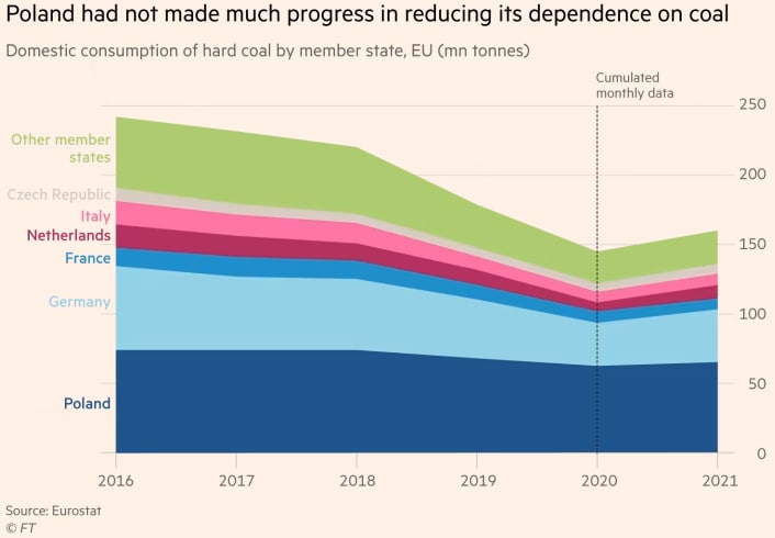 Но при этом оно также перерезало один из основных источников внутреннего снабжения страны углем. Хотя Польша является крупным производителем угля, его большая часть имеет низкое качество и используется в основном на электростанциях. Россия поставляла около двух пятых угля, сжигаемого польскими домохозяйствами.