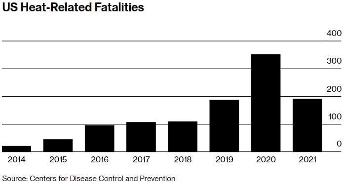 Более жаркое лето повышает риск того, что для некоторых людей потеря мощности окажется фатальной. По данным Лаборатории энергетической справедливости Университета Индианы, в 41 штате есть какая-то защита от отключения коммунальных услуг зимой, тогда как только в 19 есть законы или правила, предотвращающие отключения в жаркую погоду. В среднем с 2017 по 2021 год в США было 188 смертей, связанных с жарой, по сравнению с 81 в среднем за пять лет до этого.