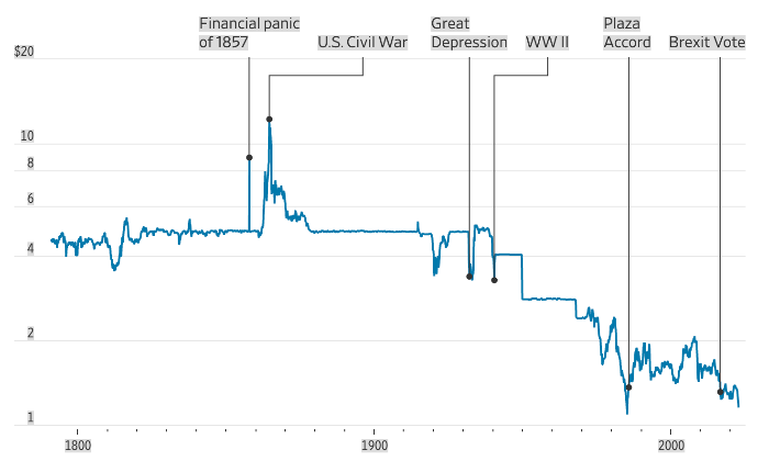 Британский фунт некогда был ведущей мировой валютой. Но в последнее столетие стоимость фунта постоянно снижалась, что совпало с ослаблением его статуса основной валюты в мировой торговле и резервах центральных банков. Голосование по Брекзиту в 2016 году нанесло еще один тяжелый удар, что привело к громким сравнениям между фунтом и рискованными EM-валютами.