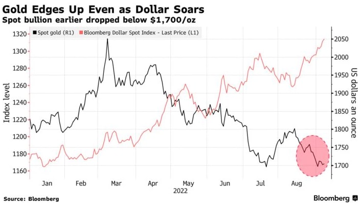 Слитки упали в цене ниже уровня 1700 долларов за унцию, поскольку центральные банки во всем мире повышают процентные ставки для борьбы с инфляцией, притупляя привлекательность беспроцентных активов.