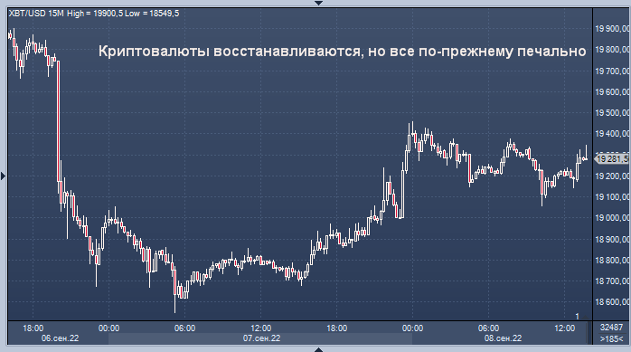 Цена биткойна выросла на 2% за последние 24 часа до 19 200 долларов, поднявшись с минимума в среду около 18 500 долларов, что было примерно самым низким уровнем за весь год для крупнейшей криптовалюты. Биткойн теперь твердо вышел за пределы диапазона от 20 000 до 25 000 долларов, в котором он застопорился с середины июня, когда резкая распродажа цифровых активов отбросила токен с 30 000 долларов.