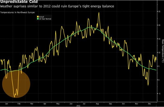 Погода – самый непредсказуемый фактор. Прошлая зима была относительно мягкой, в результате чего запасы топлива в Европе превысили ожидаемые. А прогнозы на октябрь, когда начинается отопительный сезон, показывают температуру выше нормы. Но если Европа в конечном итоге столкнется с чем-то похожим на 2012 год, который был самой холодной зимой за последние 10 лет, тогда спрос на газ в регионе будет примерно на 20 миллиардов кубометров, или на 5% от обычного годового потребления, выше текущего предположения, по данным Валавиной из Fitch. По ее словам, это будет означать «более сложный баланс спроса и предложения на 2023 год».
