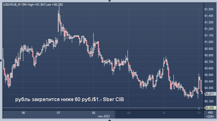 Также в Sber CIB отмечают, что если помесячная инфляция в США за август будет почти нулевой, то американская валюта продолжит глобально дешеветь и рубль закрепится ниже 60 руб./$1.
