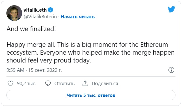 Эфир вырос на 3% после слияния до 1654 долларов. Токен вырос более чем в пять раз в 2021 году, значительно превзойдя биткойн, отчасти благодаря оптимизму по поводу слияния. Обе криптовалюты столкнулись с трудностями с момента достижения рекордных максимумов в ноябре, когда эфир упал более чем на 50% в этом году.