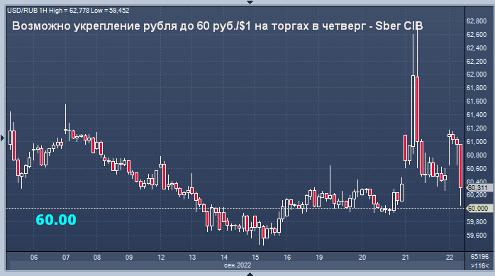 Возможно укрепление курса рубля до уровня 60 руб./$1 на торгах в четверг на фоне поддержки экспортеров, считают эксперты Sber CIB.