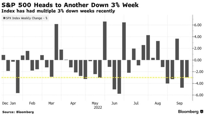 Правительство Великобритании обнародовало масштабный план по снижению налогов, который обрушил фунт и облигации страны, так как инвесторы были обеспокоены стимулирующими эффектами с безудержной инфляцией. Это испортило и без того негативное настроение среди рискованных активов по всему миру. Фьючерсы на S&P 500 упали на 1,4% по состоянию на 8:42 утра в Нью-Йорке, и трейдеры, которые следят за графиками в поисках признаков того, где падение может ослабнуть, готовятся к худшему.