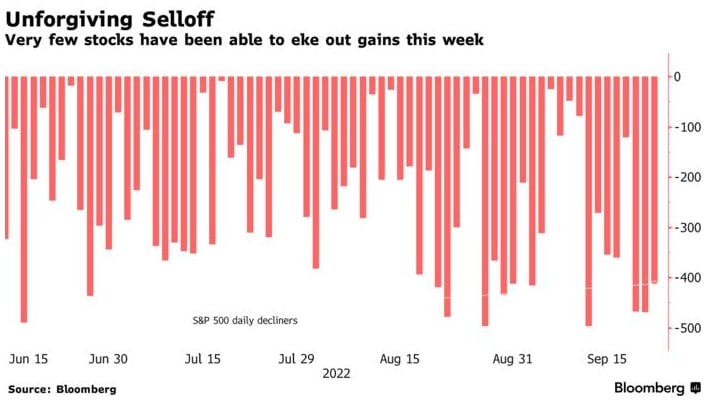 S&P 500 падает четвертый день подряд и находится на пути к четвертому недельному снижению за пять последних. Распродажа была неумолимой во всех секторах: более 400 участников закрывались ниже в каждый из последних трех дней до пятницы.