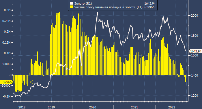 Объем длинной спекулятивной позиции во фьючерсах и опционах на золото снизился до 84 887 контрактов (минимум почти за четыре года).