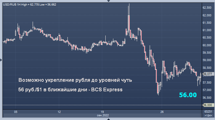 Аналитик BCS Express Михаил Зельцер отмечает, что сейчас рубль пользуется повышенным спросом на фоне рисков расчетов в валютах недружественных стран, налогового периода, ожиданий выплаты дивидендов экспортерами и высоковероятной паузы Банка России по ставке. Диверсия на "Северных потоках" и непрекращающиеся угрозы санкций не оказали влияния на курс рубля, а вот взлет нефтяных фьючерсов и откат доллара на мировой арене вызвали укрепление российской валюты. Пара USD/RUB в ближайшие дни на время может технично скатиться к майским минимумам - чуть ниже 56 руб./$1.