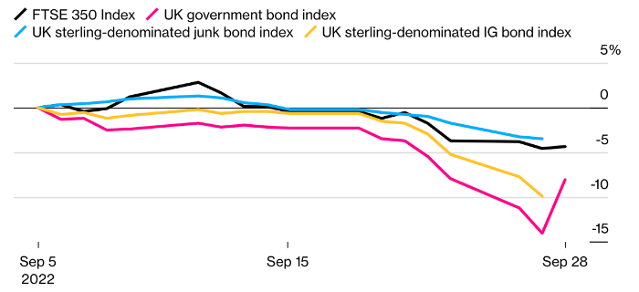 За неделю, прошедшую после того, как правительство объявило о крупнейшем снижении налогов с 1972 года, предоставив лишь ограниченные сведения о том, за счет чего это будет финансироваться, фунт упал до самого низкого уровня по отношению к доллару за всю историю, стоимость страхования государственного долга Великобритании от риска дефолта взлетела до максимума с 2016 года, а Банк Англии был вынужден вмешаться на фоне опасений по поводу пенсионных фондов страны.