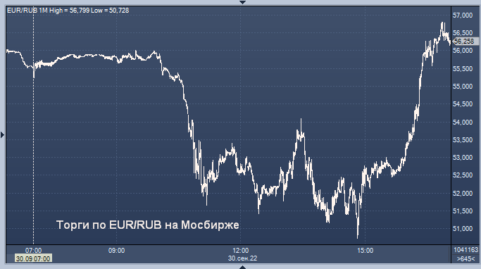 Вероятно, это были технические продажи валюты маржинальными участниками рынка. А начало этим продажам положили операции конвертации валюты в рубли олигархами и крупными компаниями в страхе перед заморозкой их долларовых и евро-счетов. Эти завуалированные продажи с помощью скрытых ордеров-айсбергов начались после объявления о частичной мобилизации.
