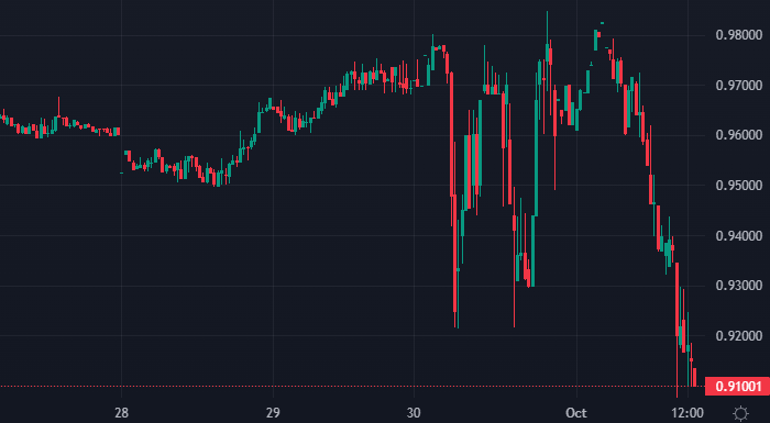 График курса евро к доллару расчетами «завтра» на Мосбирже интервалами 15 минут