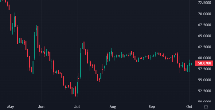 Рубль стабилизировался около 59 по отношению к доллару, резко упал по отношению к евро
