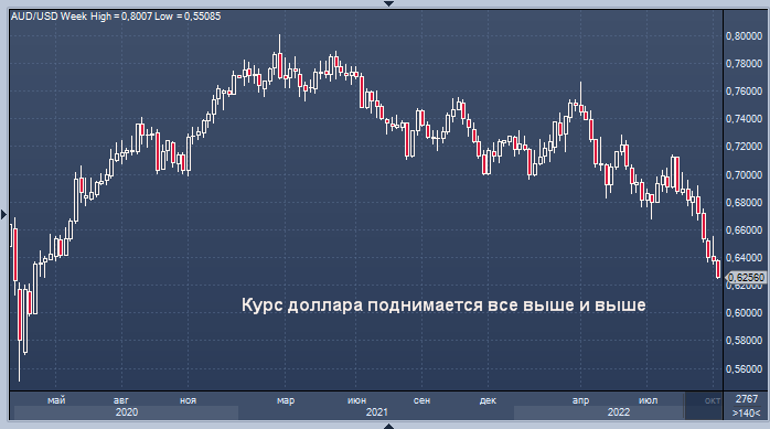 График доллара США к австралийскому доллару интервалами в 1 неделю